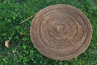 realizzata con 21 tubi di cartone da plotter e vecchio tavolo di legno da lavoro